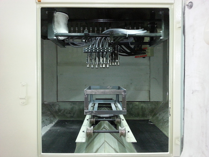 該設備是根據(jù)不銹鋼水槽產(chǎn)品特性而專門設計的(非標準型)轉動式自動噴砂機,完全適合購方所提供的產(chǎn)品。根據(jù)購方對產(chǎn)品效率的要求,設備采用轉動推車式噴砂機。